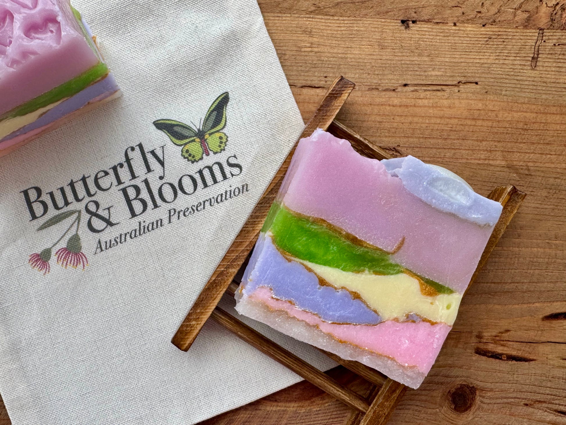 Sweet wooden soap rack & gift bag included.